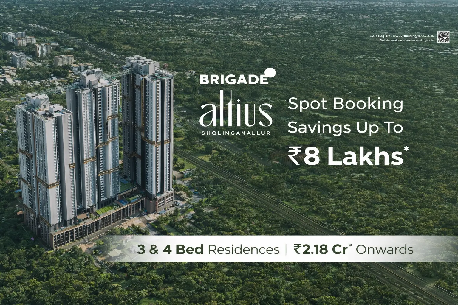 Brigade Altius represents the pinnacle of modern luxury living, designed for discerning homeowners who demand exceptional quality and sophisticated design. Located in Sholinganallur, one of Chennai's most dynamic neighborhoods, this iconic residential development features premium 3 & 4 BHK duplex luxury apartments.